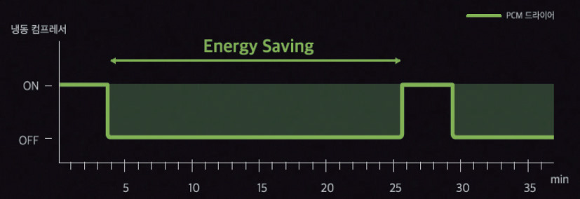 저부하 시 운전사이클 연장으로, 전력 소모 감소 및 냉동 컴프레셔 운전 수명 연장